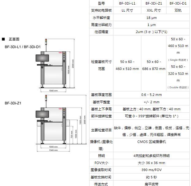 SAKI在線(xiàn)在線(xiàn)AOI自動(dòng)光學(xué)檢測(cè)儀BF-3Di參數(shù)簡(jiǎn)介: