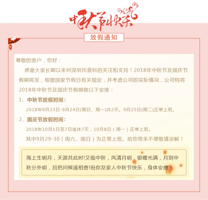 托普科-2018年中秋及國(guó)慶節(jié)放假通知