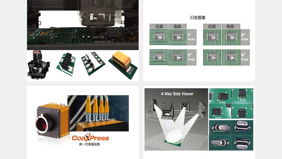 數(shù)字變頻投影技術(shù)利用4個(gè)3D發(fā)射頭獲取無(wú)盲點(diǎn)的3D圖像,結(jié)合高低頻摩爾條紋進(jìn)行組件高度檢測(cè),應(yīng)用完整3D結(jié)合主相機(jī)進(jìn)行精確的檢測(cè)。