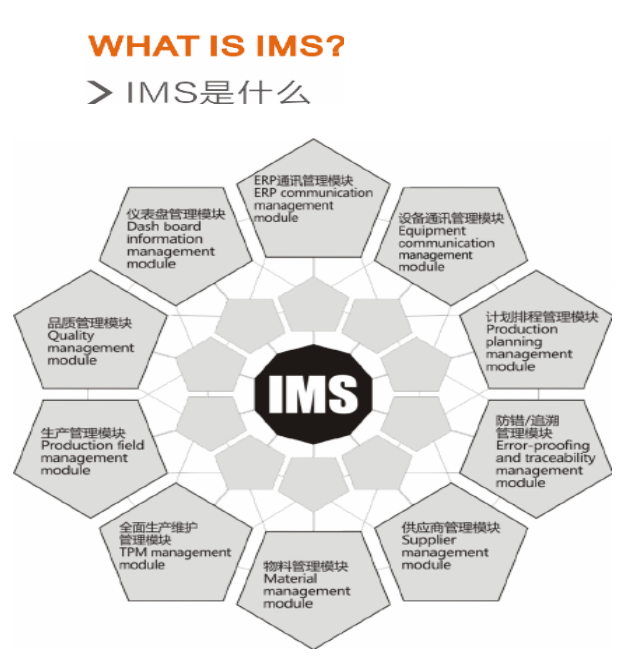 IMS智能制造管理系統(tǒng) 智慧工廠mes系統(tǒng)是一套獨(dú)特的閉環(huán)式電子制造智能管理解決方案。通過對(duì)物流,產(chǎn)品流及信息流的全過程特的管理方式和管理工具。實(shí)現(xiàn)減員增效,提高 優(yōu)化,.IMS智能制造管理系統(tǒng) 智慧工廠MES系統(tǒng)實(shí)現(xiàn)減員增效,提高 管理。產(chǎn)品品質(zhì),降低生產(chǎn)成本,全面防錯(cuò)及可追溯管理。